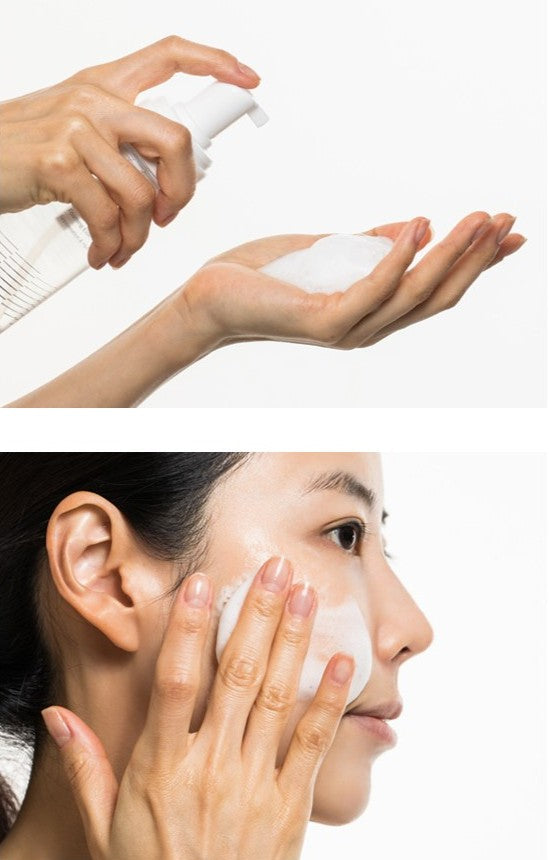 Après le nettoyage, pour affinez la texture de la peau, pompez la quantité appropriée de Nouvelle Cell Foaming Essence dans vos mains.