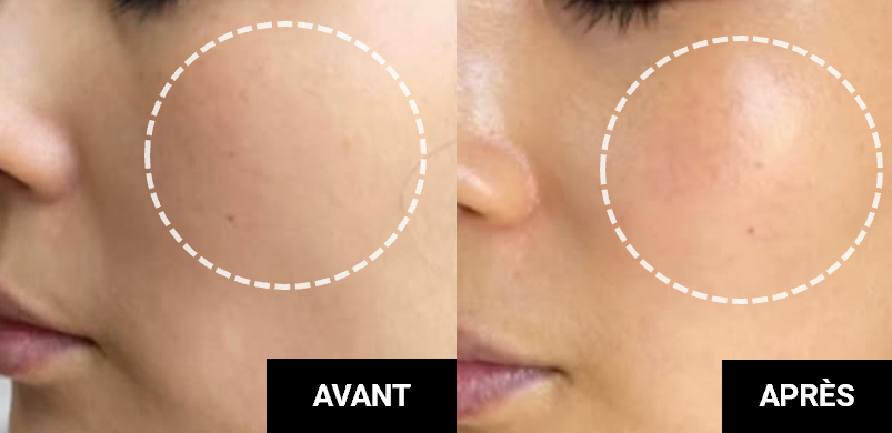 Une amélioration de la tension du derme, une hydratation complète, une peau raffermie et un grain de peau resserré.
