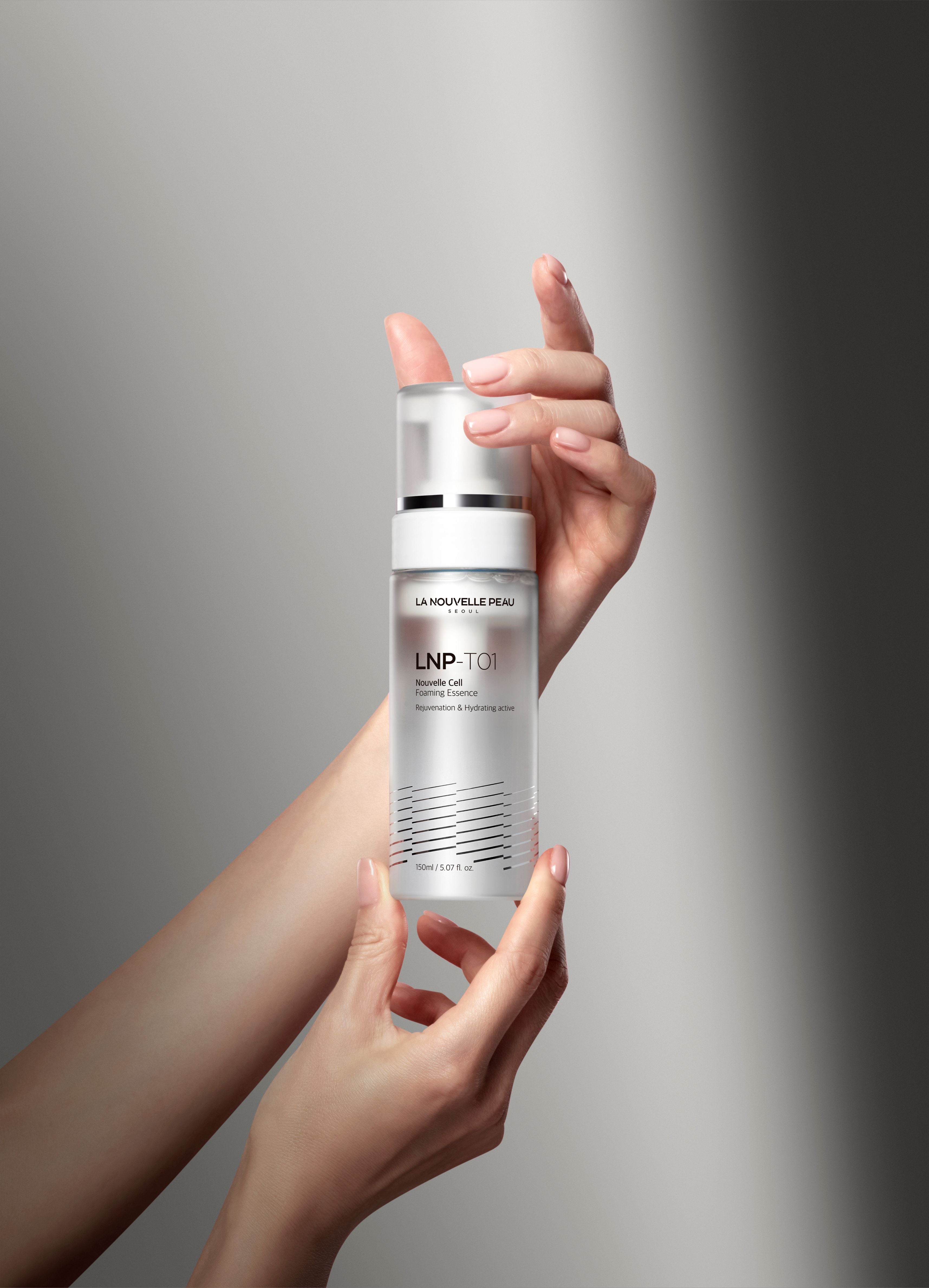Étape 1. Après le nettoyage, pour affinez la texture de la peau, pompez la quantité appropriée de l'Essence Nouvelle Cellule Moussante dans vos mains.